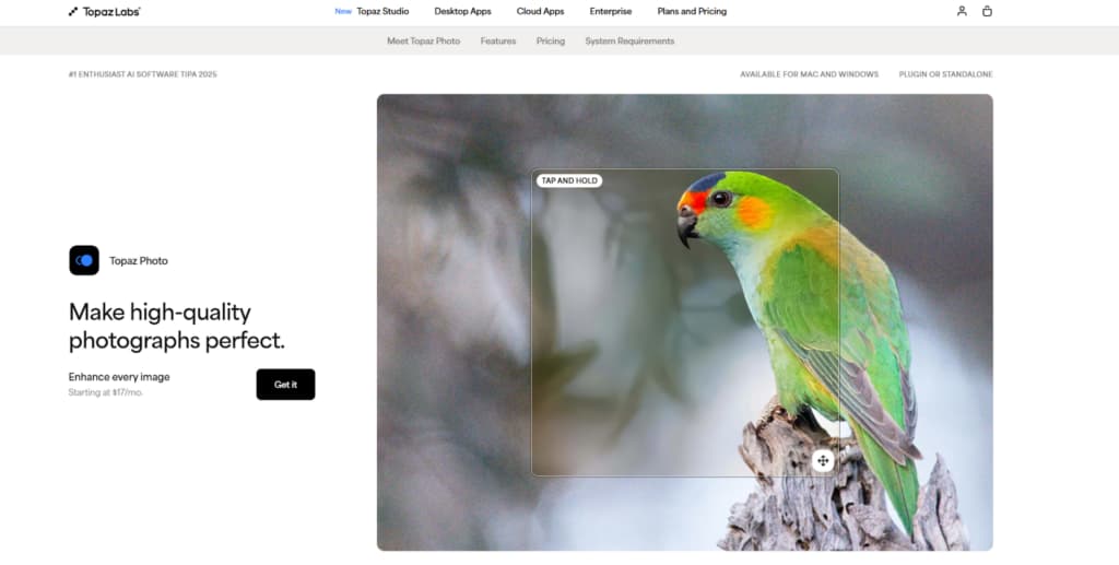 Topaz Labs is a desktop application. It focuses on detail recovery and noise suppression. This software uses local AI models requiring good computing power. It’s a specialist for enhancing clarity and sharpness.